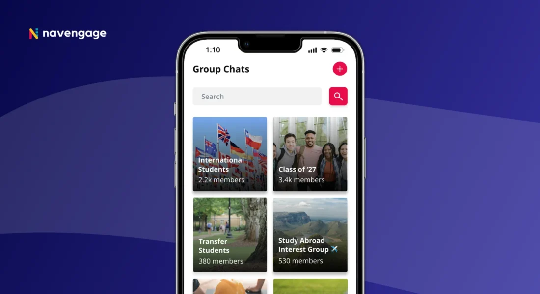 With Navengage’s app, you can help your students find their place on campus. Students can easily explore campus events and student organizations that speak to them, participate in discussions on topics of personal interest in group chats and on the newsfeed, and meet other students who share their backgrounds and passions.