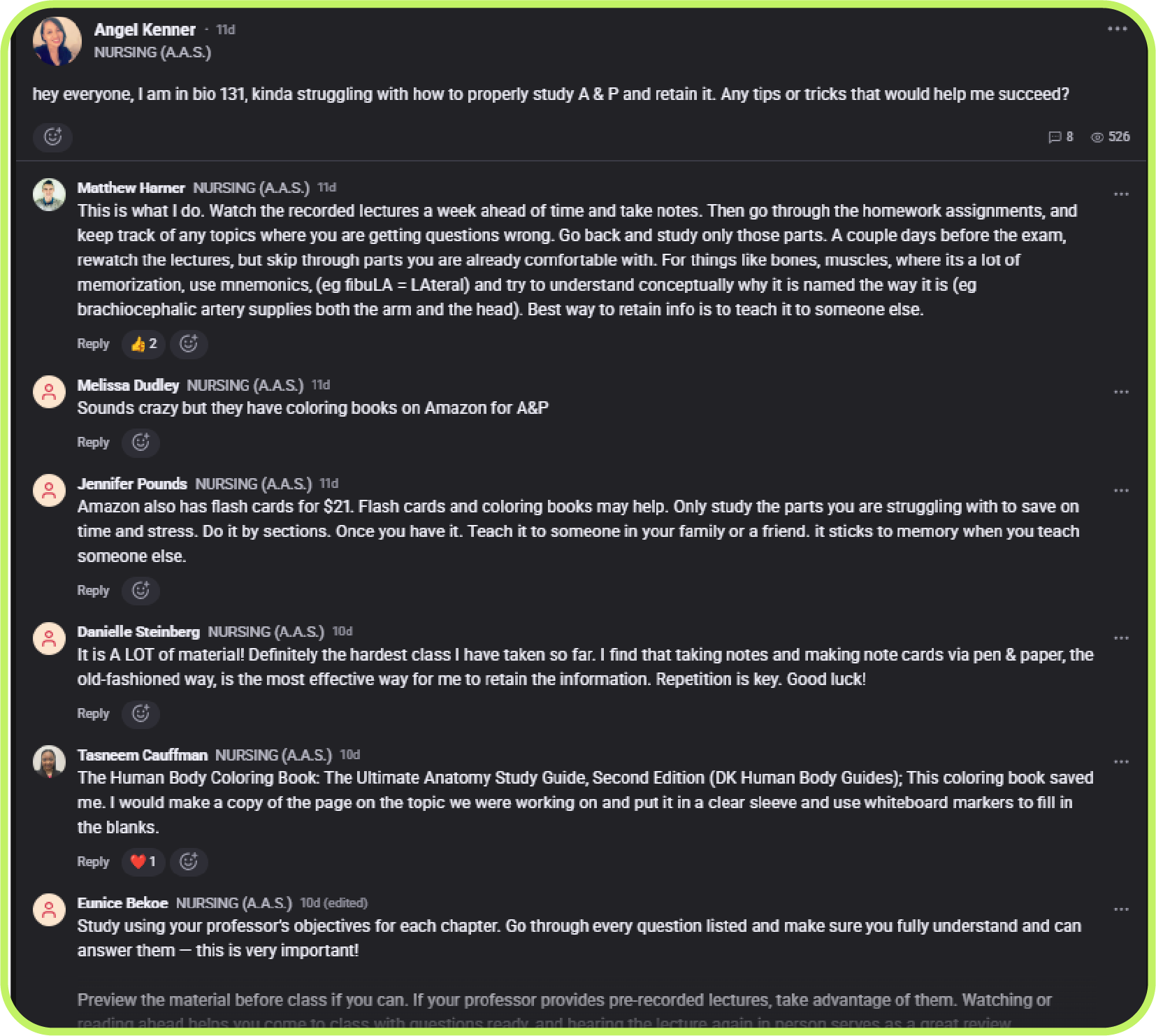 - Cohort-specific Groups (i.e. Nursing students, Health Sciences students)